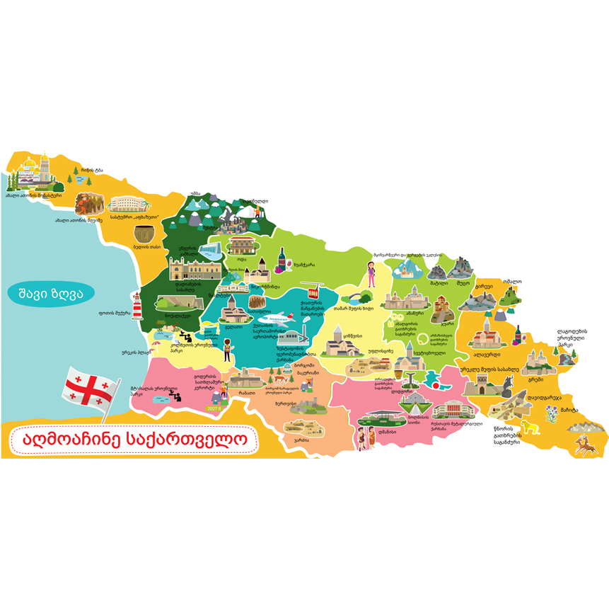 16 მაგნიტისაგან შემდგარი რუკა, რომელიც ბავშვებს საქართველოს ღირსშესანიშნაობებს აცნობს.